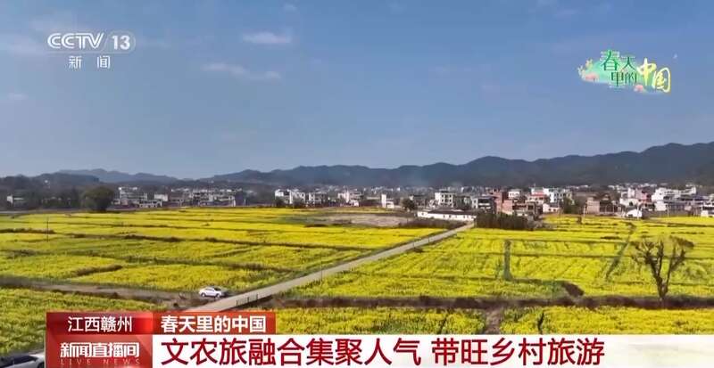 在赣州信丰县铁石口镇,1200多亩盛开的油菜花像金色的织锦铺展在大地上。农户通过彩色油菜品种搭配,精心打造出不同造型,构成了一幅美丽的春日乡村画卷。