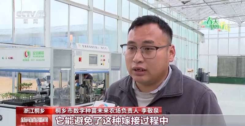 桐乡市数字种苗未来农场负责人 李敬泉:这种嫁接机器人能避免嫁接过程中病害病菌的传染,提高整个种苗的质量。