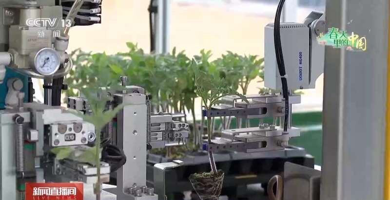 在浙江桐乡市数字种苗未来农场,番茄、辣椒等茄果类种苗,通过第五代嫁接机器人完成嫁接,过程变得轻松高效。每小时可嫁接500-700株种苗,存活率达99%。