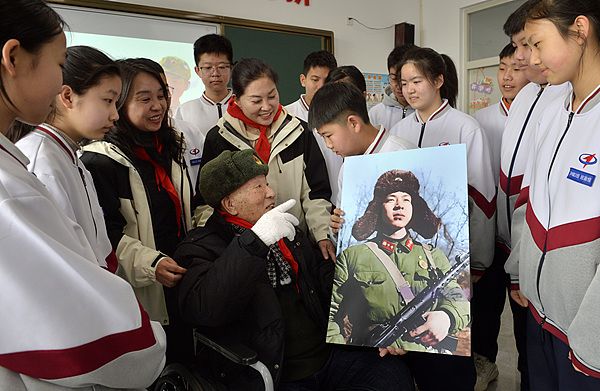 沈阳:雷锋生前战友进校园 与师生共同“点赞”雷锋事迹