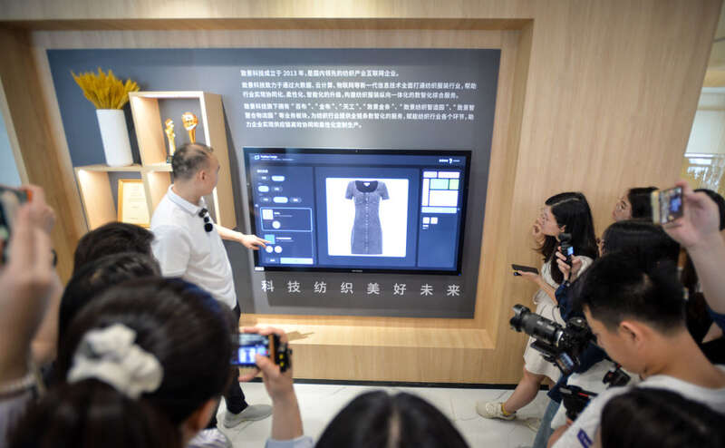 2024年5月15日,广州一家信息科技公司的工作人员演示AI辅助服装款式生成技术,该企业运用多种先进技术将近万家企业、70万台织机聚点成网,推动网内企业整体效率提高30%。近年来,一大批创新成果帮助众多传统企业迈开数字化转型脚步,为传统产业改造升级发展新质生产力提供了宽阔路径。
