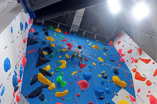 2025年3月5日,上海,徐汇西岸百年水泥厂的废弃筒仓现已改建为大型室内专业攀岩场馆,吸引了许多极限运动爱好者前来体验。