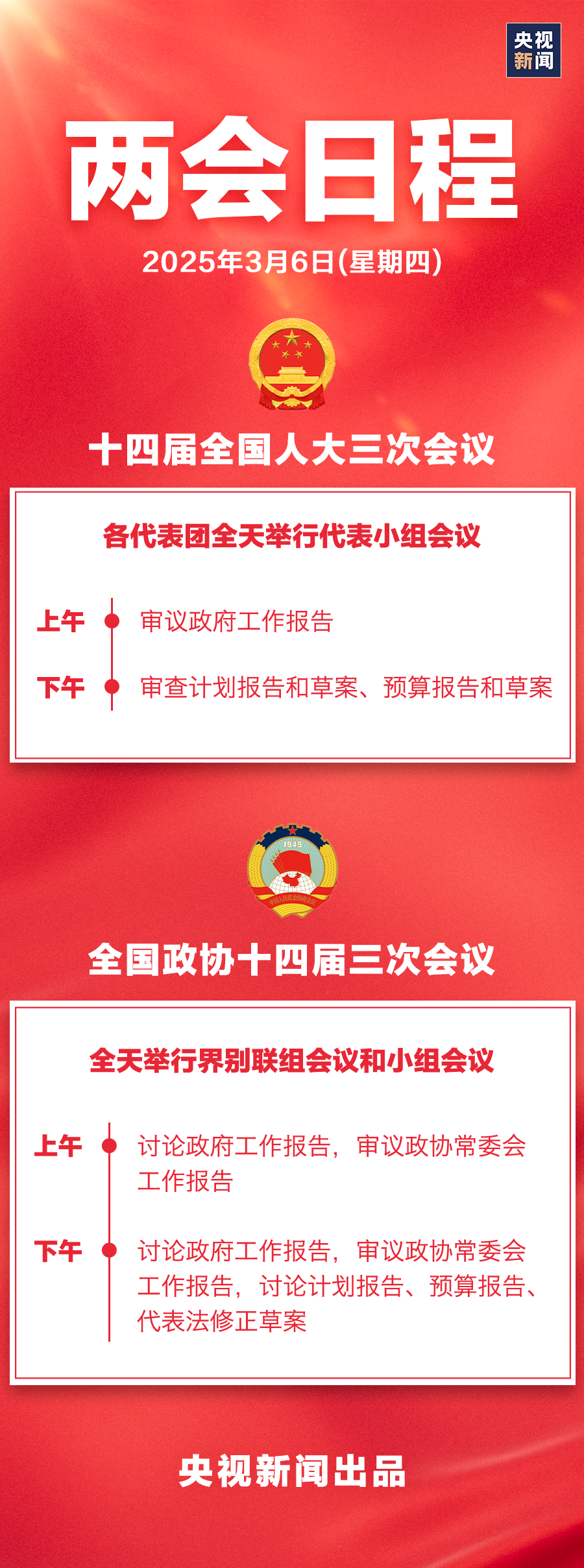 两会日程预告丨3月6日:审议和讨论政府工作报告 人代会审查计划报告和预算报告