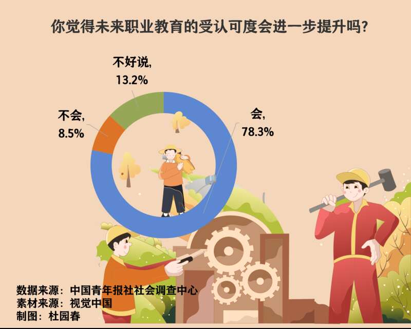 78.3%受访者认为未来职业教育的受认可度会进一步提升