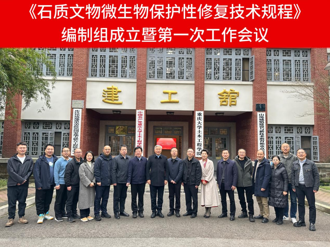 近年来,重庆大学刘汉龙院士团队将先进的微生物矿化技术用于岩土文物的保护和修复,在大足石刻、瑞金红井纪念碑、敦煌莫高窟、云冈石窟、江津石佛寺等多地开展了研究性保护修复工作,并取得了显著成果。此次会议的召开,不仅为《石质文物微生物保护性修复技术规程》的编制工作奠定了坚实基础,也为我国文物保护事业的蓬勃发展注入了新的活力。