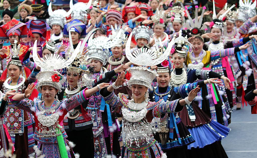 广西融水:少数民族相聚梦呜苗寨盛装庆祝妇女节