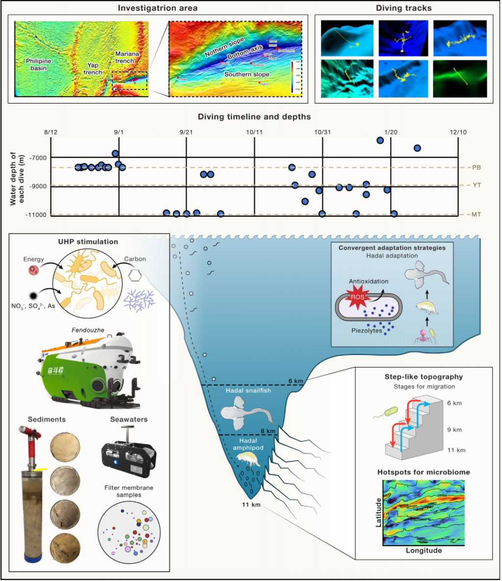 研究团队具体回答了以下问题:为什么深渊区微生物组具有极高的新颖性和多样性?深渊区微生物如何适应?大型底栖动物又是如何适应极端的深渊环境?