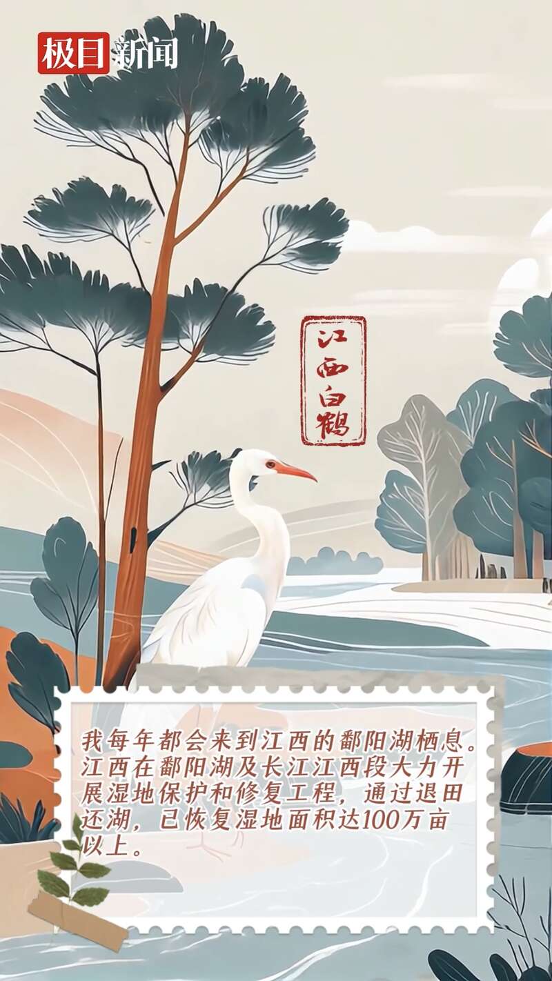 每年,大批的白鹤都会来到江西的鄱阳湖栖息,鄱阳湖白鹤占全球总数的98%。近年来,江西在鄱阳湖及长江江西段大力开展湿地保护和修复工程。通过退田还湖,已恢复湿地面积达100万亩以上,实施湿地生态补水工程,保障湿地水位稳定。为保障白鹤等候鸟北迁安全,当地还通过巡护排查、伤鸟救治、智慧监测等一系列举措,为候鸟提供优质的栖息环境和安全的迁飞通道。