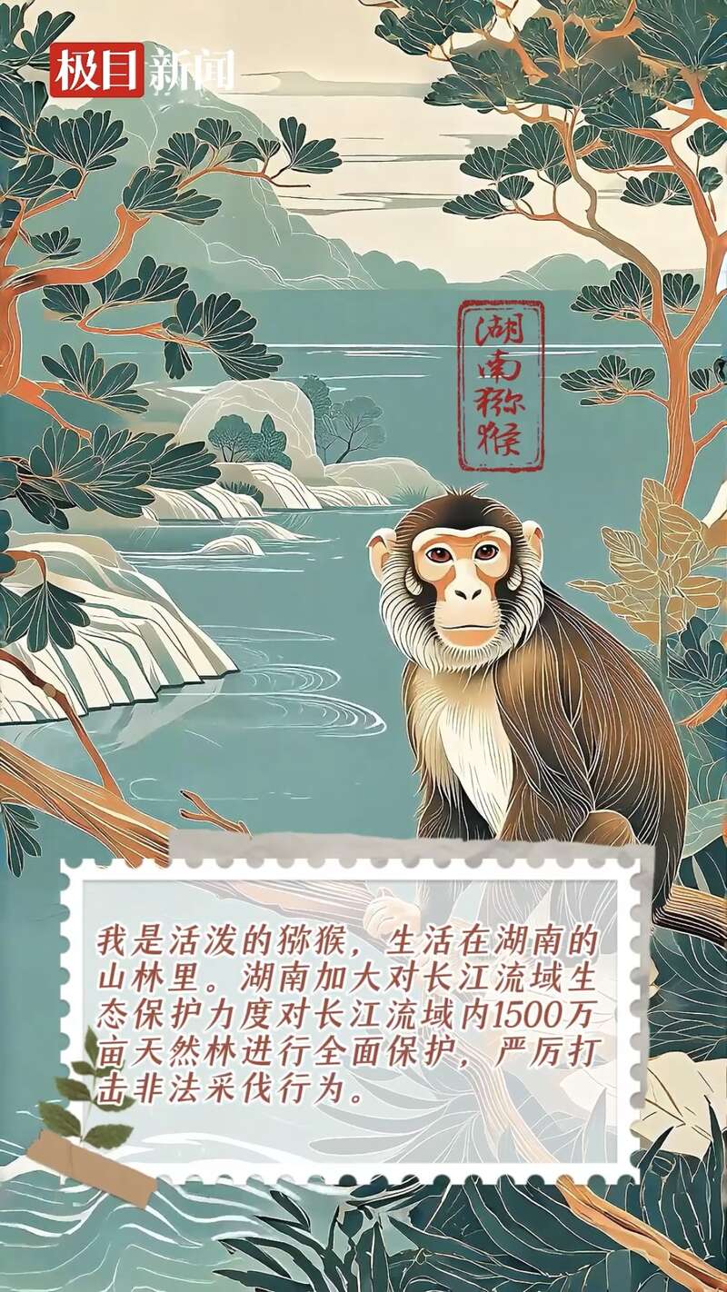 活泼的猕猴,生活在湖南的山林里。湖南加大对长江流域生态保护力度,一方面加强森林资源保护,实施了天然林保护工程,对长江流域内1500万亩天然林进行全面保护,严厉打击非法采伐行为。另一方面,建设了一批污水处理设施,改善了周边水环境。此外,湖南还开展了丰富多样的环保宣传活动,如环保知识进校园、进社区等活动超5000场次,提高了公众的环保意识。