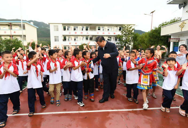 2020年9月16日,习近平在湖南郴州市汝城县文明瑶族乡第一片小学,同学生们亲切交流。