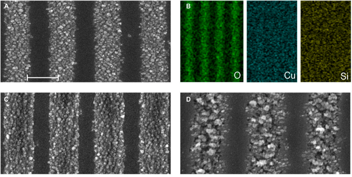 (A,C和D)LIPSS的SEM图;(B)氧、铜和硅的二维EDX图