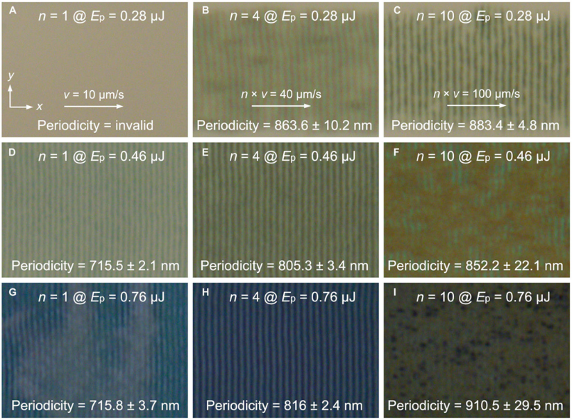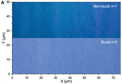 飞秒脉冲串对LIPSS周期与调制深度的影响