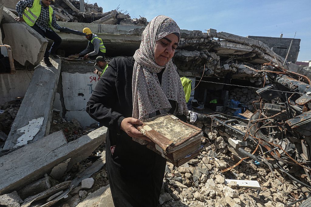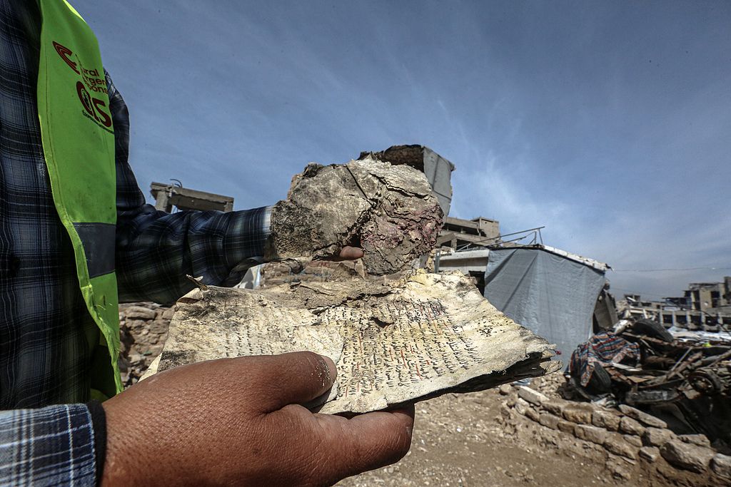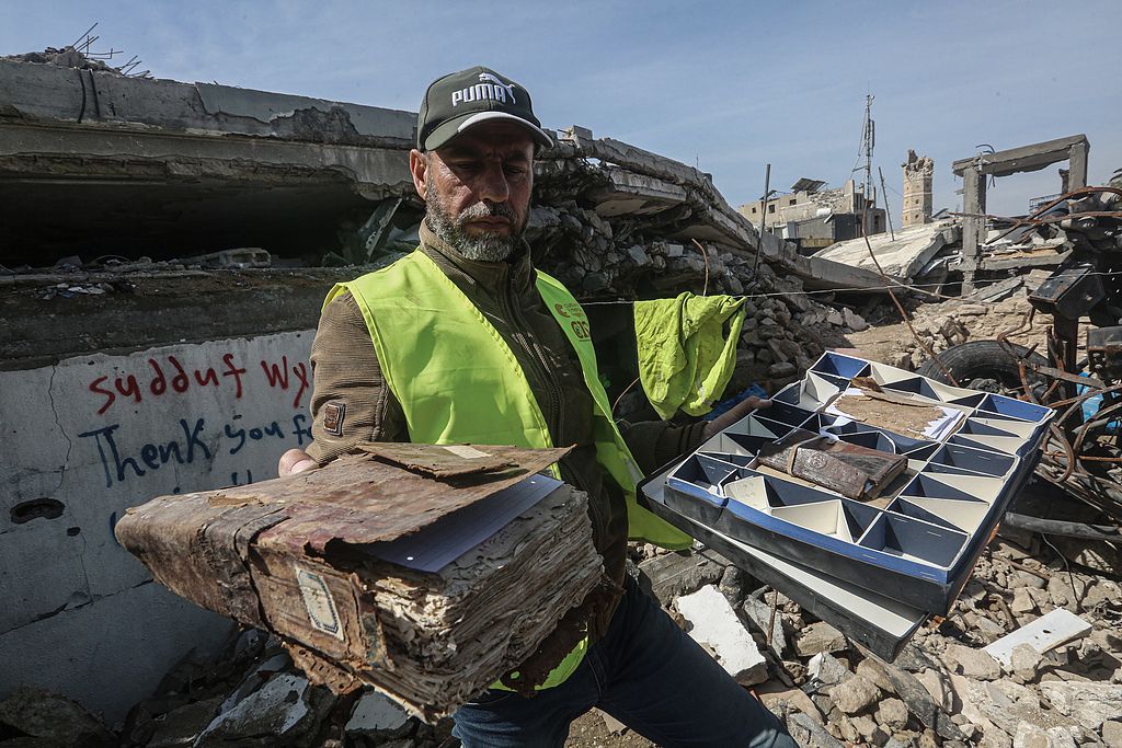 当地时间2025年3月6日,巴勒斯坦加沙地带,巴勒斯坦宗教事务部所属的文献和古物部门救援队正在努力恢复巴勒斯坦文化遗产的残余。
