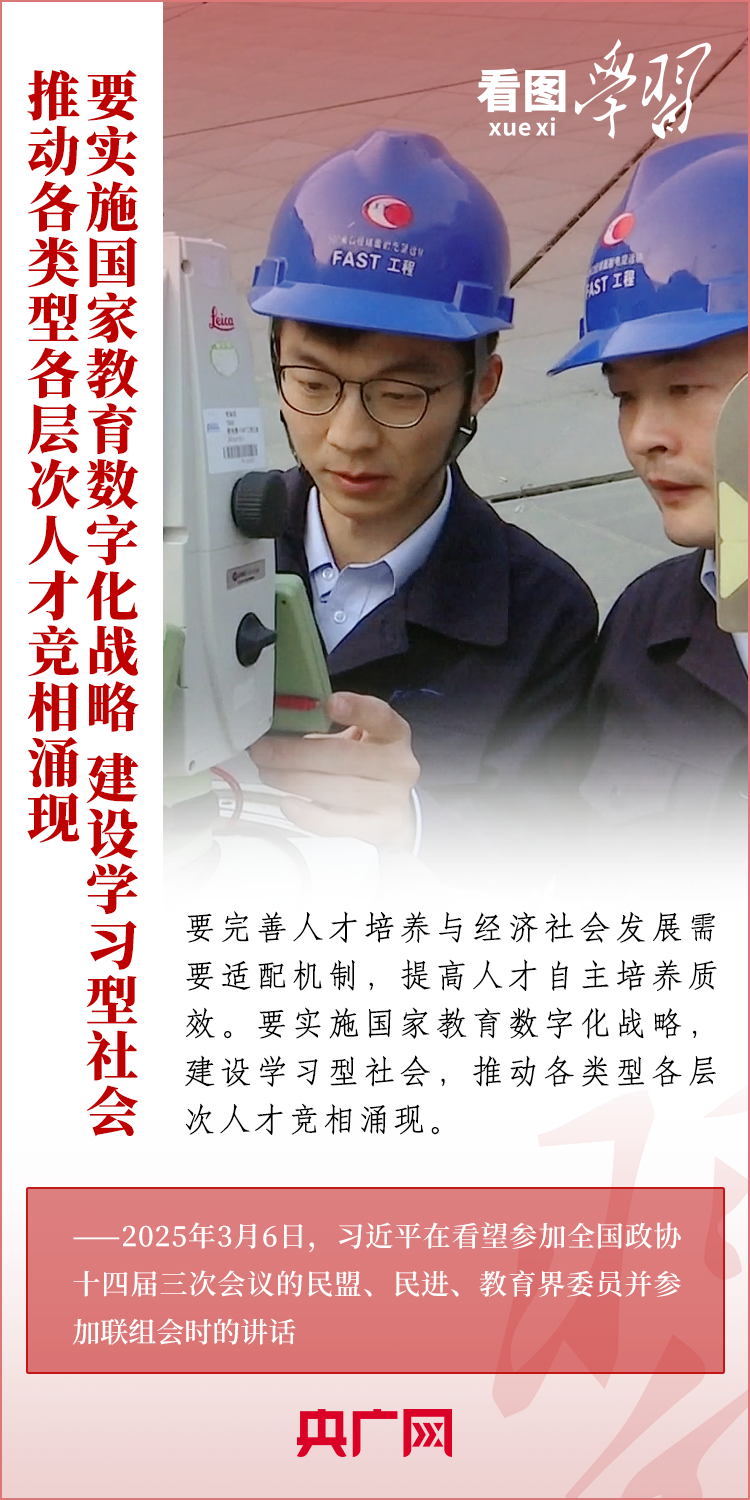 “建设教育强国、科技强国、人才强国,是全党全社会的共同责任。”3月6日,习近平总书记在看望参加全国政协十四届三次会议的民盟、民进、教育界委员并参加联组会时发表重要讲话。总书记就做好教育、科技、人才工作作出深刻阐释,强调必须深刻把握中国式现代化对教育、科技、人才的需求,强化教育对科技和人才的支撑作用,进一步形成人才辈出、人尽其才、才尽其用的生动局面。一起来学习!
