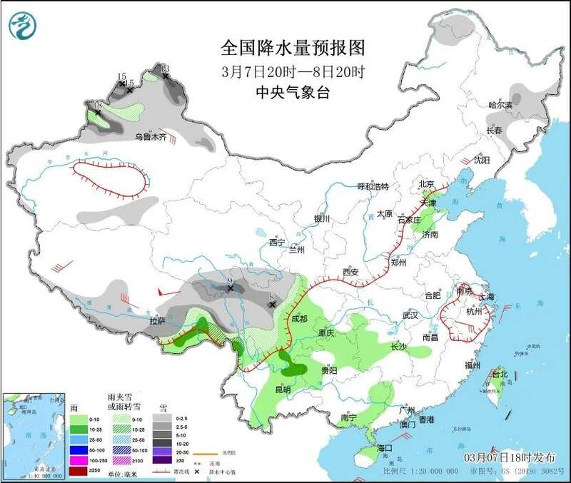 东北地区东部、新疆北部、西藏东部和南部、青海南部、川西高原、云南西北部等地部分地区有小到中雪或雨夹雪,其中,新疆北部阿勒泰山区和塔城及伊犁河谷高海拔山区、西藏东部、川西高原中部等地部分地区有大到暴雪。西藏东南部、华北东南部、西南地区东部、江南西部、华南西部、海南岛、台湾岛等地部分地区有小到中雨。