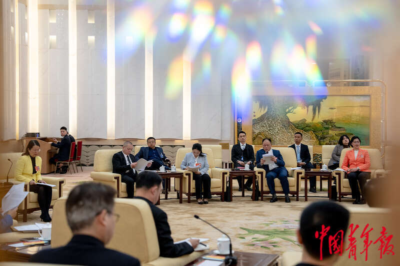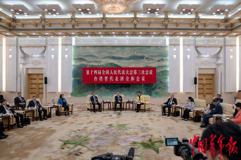3月9日,北京人民大会堂台湾厅,十四届全国人大三次会议台湾省代表团开放团组会议,代表们审议全国人民代表大会和地方各级人民代表大会代表法修正草案,最高人民法院工作报告、最高人民检察院工作报告。中青报·中青网记者 李隽辉/摄