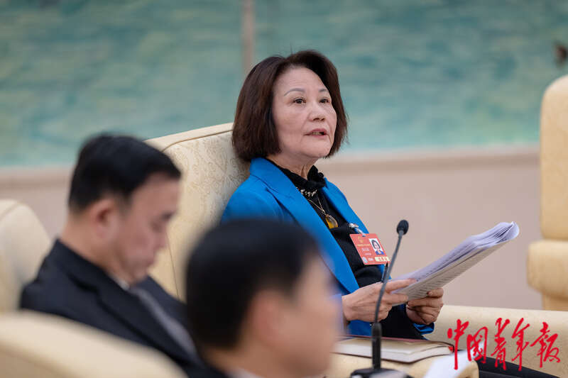 3月9日,北京人民大会堂台湾厅,全国人大代表陈云英在台湾省代表团开放日回答记者提问。中青报·中青网记者 李隽辉/摄
