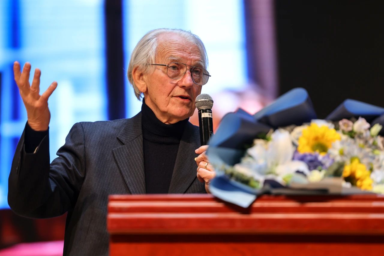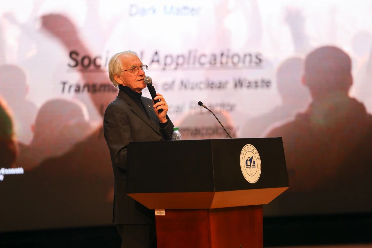 Mourou教授以《Extreme Light Grand Challenges:Scientific and Societal Applications(极端光学重大挑战:科学与社会方面的应用)》为主题,深入浅出地讲解了极端光学的基本概念及其在科学与工程领域的前沿应用。他首先介绍了极端光学的核心原理,随后结合飞秒加工、粒子加速、核子医学、核能利用与减排、太空碎片清除等领域,介绍了极端光学的诸多应用。他还分享了作为科学家获得诺贝尔奖的感受,并对和学生唐娜·斯特里克兰一起获得诺贝尔奖(后者是历史上第三位获得诺贝尔物理学奖的女性)表示自豪。