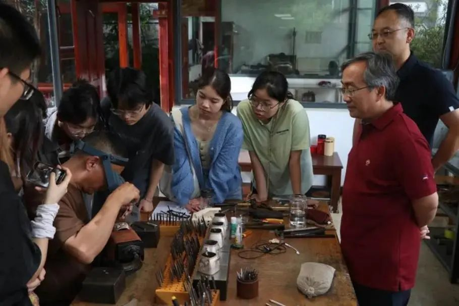 原博(左一)在安徽泾县访谈曹氏宣纸的曹二哥