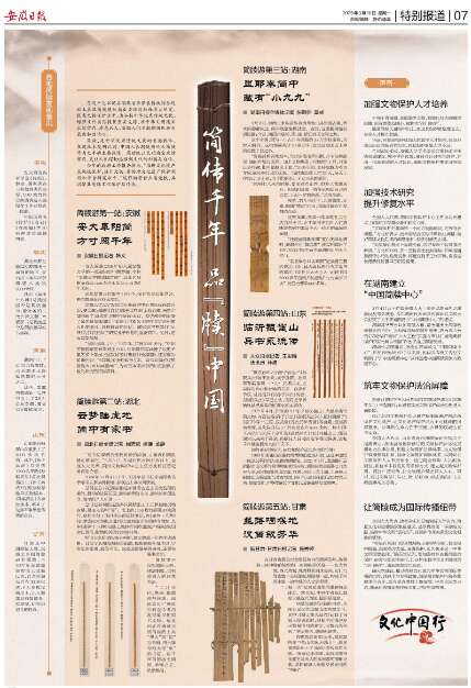 今年的政府工作报告提出,“推进文化遗产系统性保护,提升文物、非物质文化遗产保护利用和考古研究水平。”皖鄂湘鲁甘五省党报,共同聚焦简牍文化保护与传承。
