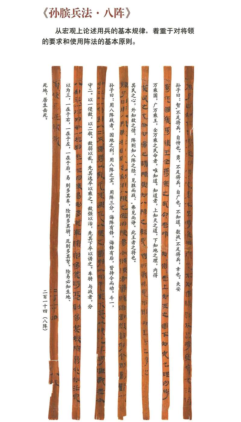 山东临沂银雀山汉墓出土了4900余枚竹简。其中,《孙子兵法》与失传1700余年的《孙膑兵法》首次同墓出土,《孙子兵法》竹简为现存最早实物版本,《孙膑兵法》为存世孤本,填补了先秦军事思想传承的空白。