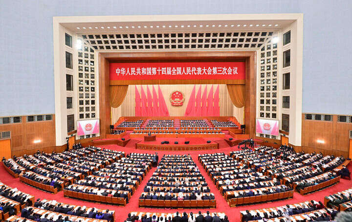 3月8日上午,十四届全国人大三次会议举行第二次全体会议,听取和审议全国人大常委会工作报告。