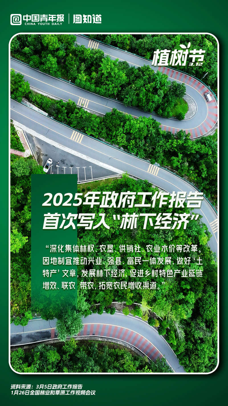 今年政府工作报告中首次写入“林下经济”,绿色不仅成为生态底色,更成为发展底色。过去一年,我国完成造林6669亩,森林可持续经营实施面积扩大到1000万亩以上。今天是植树节,一起携手植下幼苗,给春天上色。