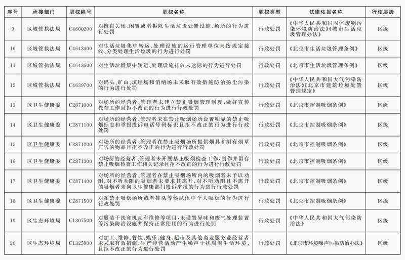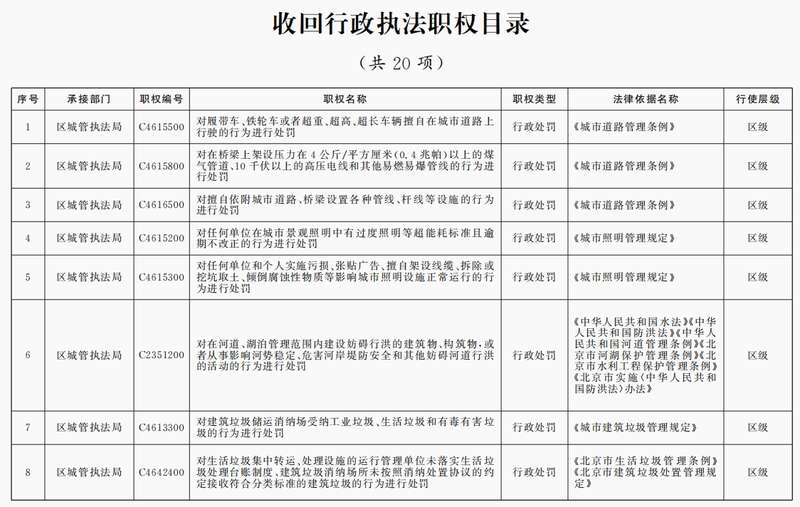 北京市政府决定:为基层减负,收回20项行政执法职权