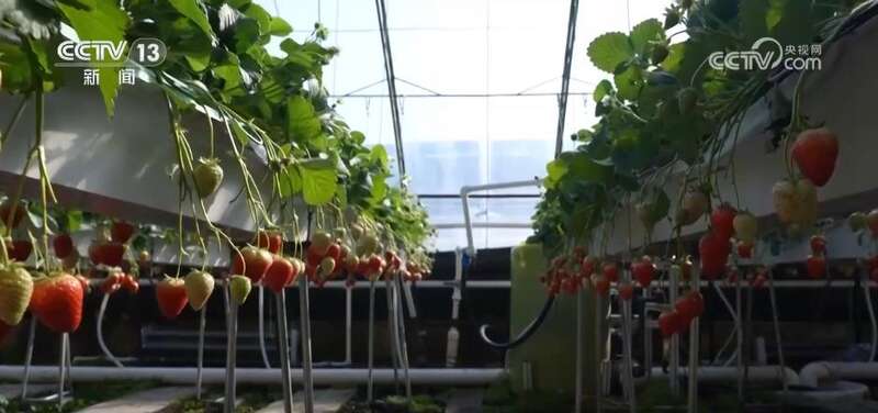 这是双阳区的一处草莓采摘园区,一垄垄草莓植株郁郁葱葱,游客们穿梭其间,采摘草莓。园区里,全自动滴灌系统正高效运作,精准调控着温度、湿度和水肥。此外,园区还采用了少肥、少虫害的种植模式,保障草莓的口感和品质。