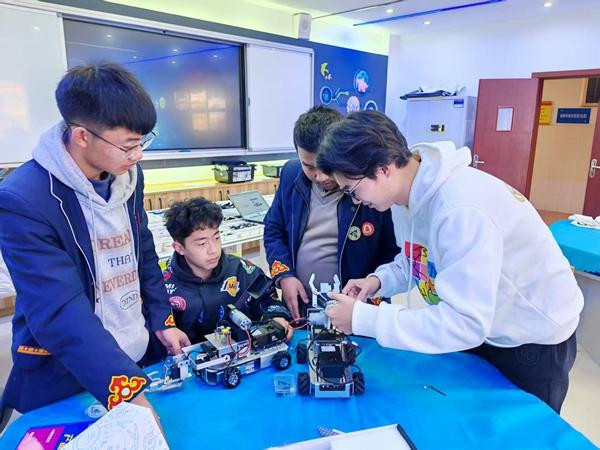在正式开始训练前的一个月,郭韬与包健宏一有时间就泡在实验室,研究设备与比赛内容,“只有自己先拿下了,才有可能带他们弄懂”。郭韬说。他们说的实验室,在南华民族中学的“机器人主题至善科技馆”里——该馆由东南大学出资援建,2021年12月开馆。