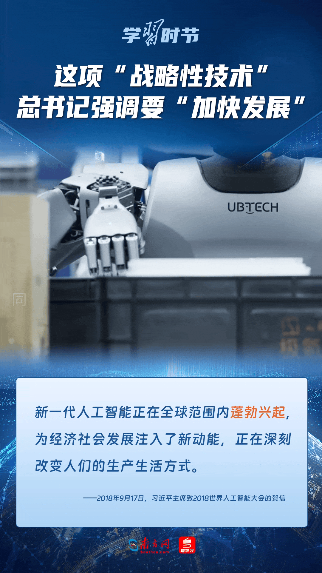 人工智能是引领科技革命和产业变革的战略性技术。党的十八大以来,习近平总书记把创新摆在国家发展全局的核心位置,高度重视人工智能发展,多次谈及这项“战略性技术”,强调要“加快发展”,为人工智能赋能千行百业指明方向。让我们一起来学习总书记关于人工智能的重要论述!