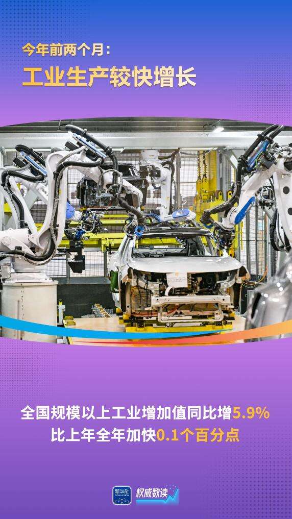 国家统计局17日发布的数据显示,今年前两个月,工业服务业较快增长,消费投资继续改善,就业形势总体稳定,新质生产力成长壮大,经济运行起步平稳,发展态势向新向好。