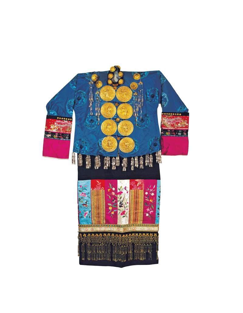 衣身镶嵌各式金银泡、金银花