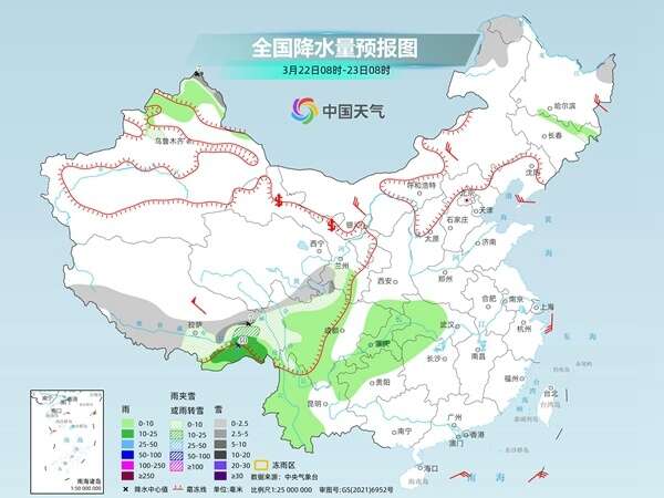 中央气象台预计,今天,新疆北疆、内蒙古东北部、黑龙江北部、西藏东部和南部、青海东部、甘肃南部、川西高原北部等地部分地区有小到中雪或雨夹雪,局地有大雪。新疆北疆、西藏东南部、西南地区大部、江汉西部等地部分地区有小到中雨,局地有大雨。