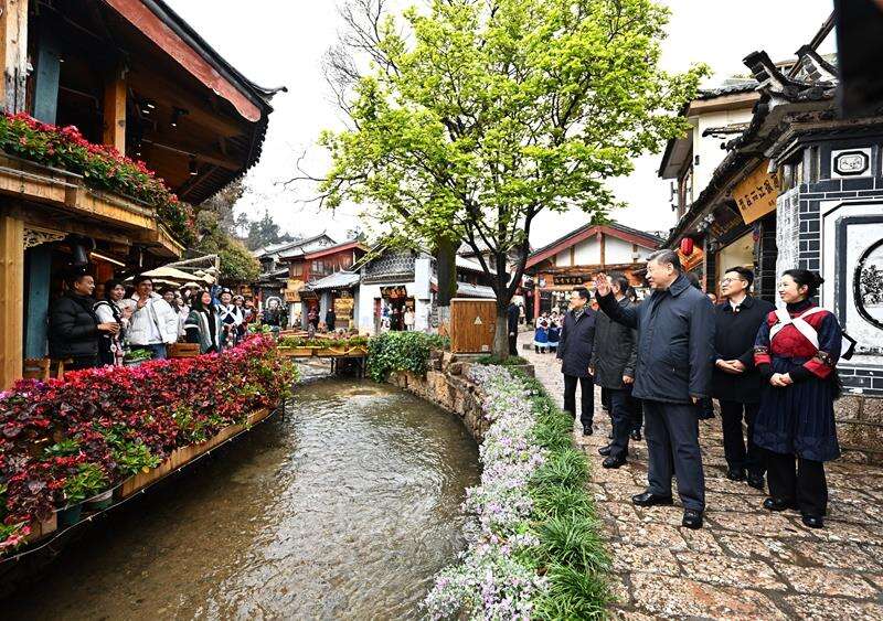 3月19日,习近平总书记来到这里,详细了解古城营建历史、纳西族民居特色和当地文化遗产保护利用、推动文旅融合发展等情况。“这里的文化、风光、民俗都非常吸引人,文旅融合促进了经济发展。”