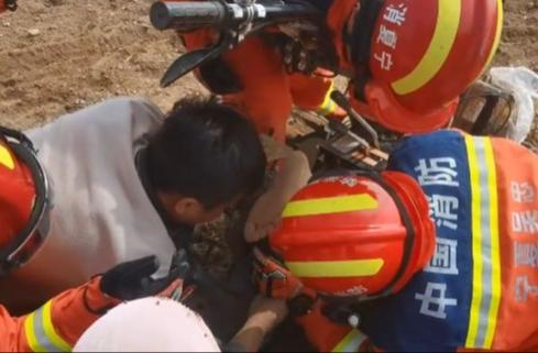 宁夏一男子腿卡旋耕机 消防紧急救援