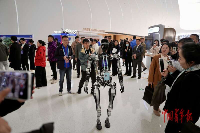 3月27日,北京,2025中关村论坛年会现场,各类机器人进行表演。中青报·中青网记者 李隽辉/摄