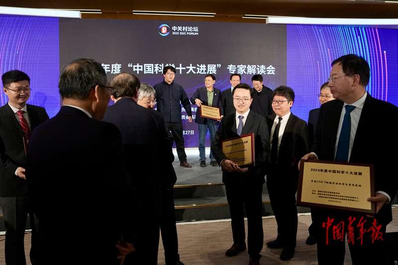 3月27日,北京,2025中关村论坛年会,获得“中国科学十大进展”的嘉宾在颁奖后交流。中青报·中青网记者 李隽辉/摄