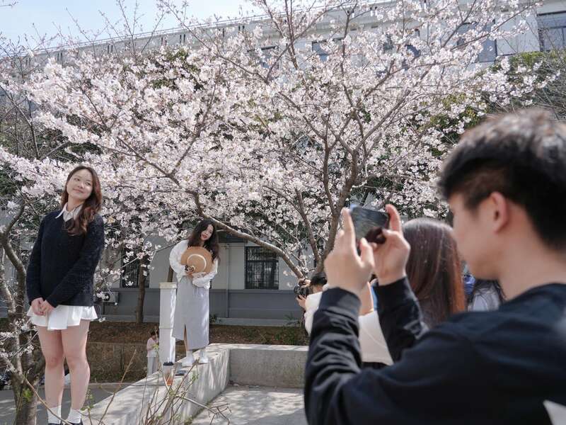 武汉樱花进入盛花期 市民游客走进“春日童话”