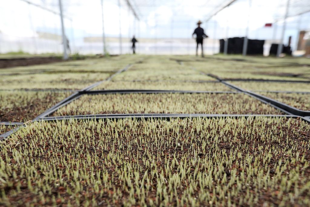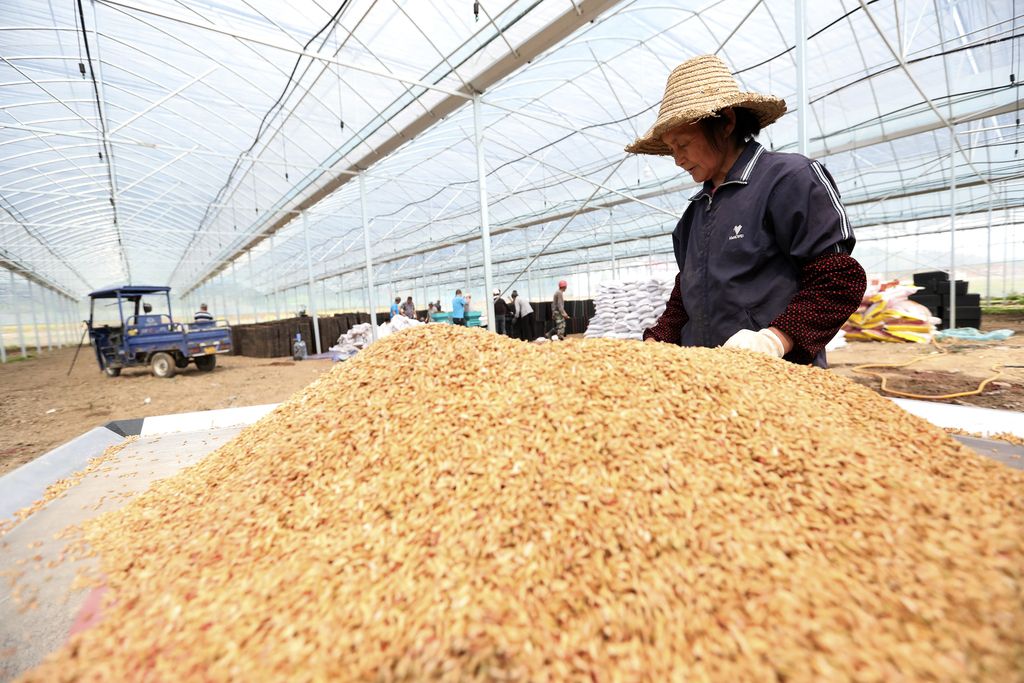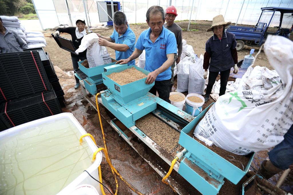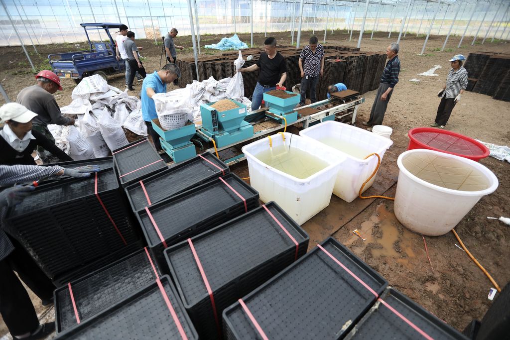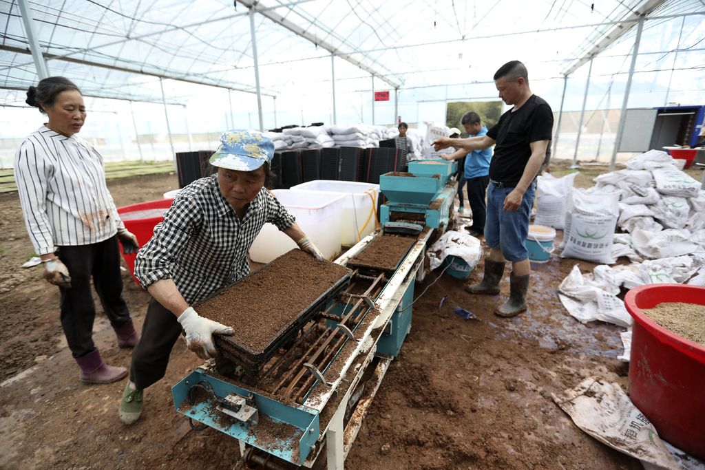 2025年3月26日,湖南郴州,在资兴市唐洞街道镜塘村,农户在育秧大棚内进行早稻育秧。