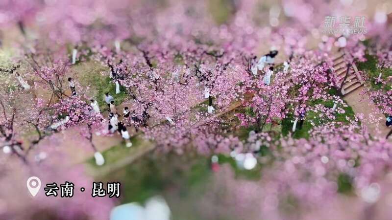 位于云南省昆明市中心的圆通山种植樱花历史悠久,“圆通樱潮”是昆明一张靓丽的“城市名片”。