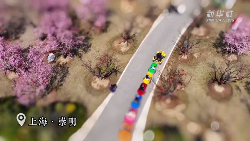 移轴镜头下,花间穿梭流连的游客与美丽的鲜花共同构成一幅生动的春日图景。