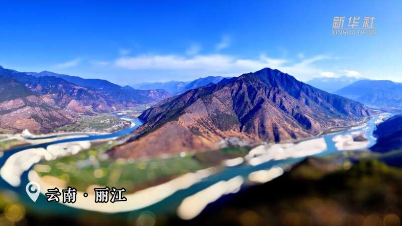位于“长江第一湾”附近的油菜花竞相绽放,金黄色的花海与错落有致的传统村落交相辉映。