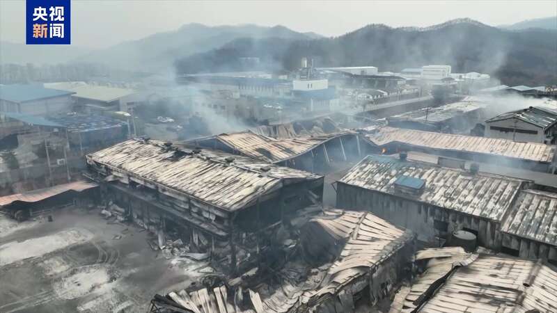 总台记者 唐鑫:我们现在来到了庆尚北道安东市一处工厂的所在地。通过镜头可以看到,在目光所及范围之内,这家工厂几乎所有建筑都在山林大火中被烧毁。根据目测,整个厂区有数千平方米,在现场还能看到浓重的黑烟,我也能闻到刺鼻的气味。这一次山火不仅是给森林,也给当地民众生活以及工厂等造成严重损失。