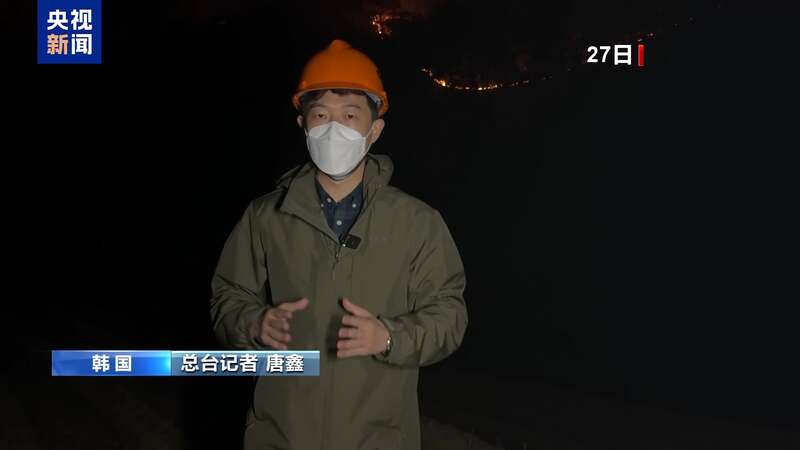 总台记者 唐鑫:我现在所在的位置位于庆尚北道青松郡的一处山火蔓延现场。通过我们的镜头可以看到,在我身后几百米远的山林中有一条清晰的火线。现在是当地时间27日22时,现场的消防救援人员介绍,所幸我们所在的地方风势没有很大,否则很快火线就会蔓延至整个山林,进而威胁山脚下的村庄。现在是夜间,消防救援直升机没法出动,地面救援人员表示,仅靠地面救援力量,很难控制住这样长达数公里的火线。对于现在这样的山火蔓延,基本处于束手无策的状态。