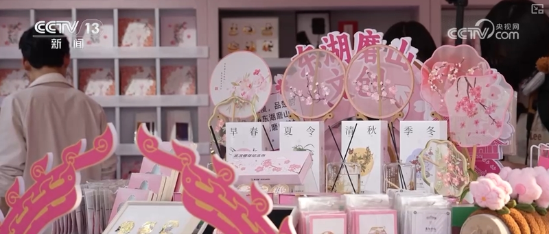 而在武汉东湖樱花园,多款融入了“春日”“樱花”等季节特色元素的文创产品同样销售火爆。