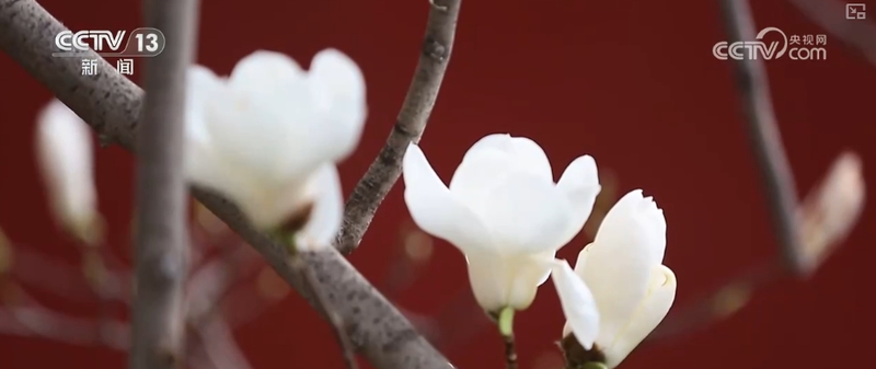 近日,北京万寿寺内的玉兰花迎来了盛花期,素净的玉兰花在红墙古建的映衬下韵味十足,赏花拍照的游客络绎不绝,以院内玉兰为原型的文创产品销售火爆。