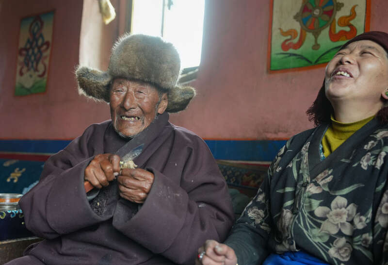 在封建农奴制度下,农奴主占有所有的土地和资源;农奴们世代为奴,毫无尊严。“田里的农活都是我们干,但收成全归农奴主。只要做的事不合他们的意,就会挨打——棍子、鞭子,随便往身上抽。”索扎老人说。夜晚的寒冷同样难熬。“那时候,我只有一条破被子勉强盖着,能有个遮风挡雨的地方睡觉都算幸运。很多人根本没住处,刮风下雨只能硬扛。”