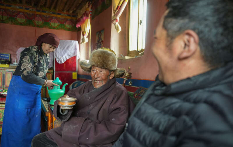 从1959年到1998年,老人先后担任村党支部书记及乡长,骑着马走遍十里八乡宣传党的大政方针、惠民政策。1974年,老人随着西藏自治区农业参观团到祖国内地参观学习。与参观团成员在天安门的一张合影,一直被他时不时拿出来“显摆”。“现在的生活太惬意了!”老人脸上洋溢着笑容,和邻里乡亲一起喝着啤酒,畅聊这来之不易的新生活,“现在有了美好的生活,吃喝不愁,再也不用像过去那样做牛做马,这在以前想都不敢想。”如今,老人享受着养老金、医疗保险等惠民政策,儿孙满堂,日子安稳幸福。