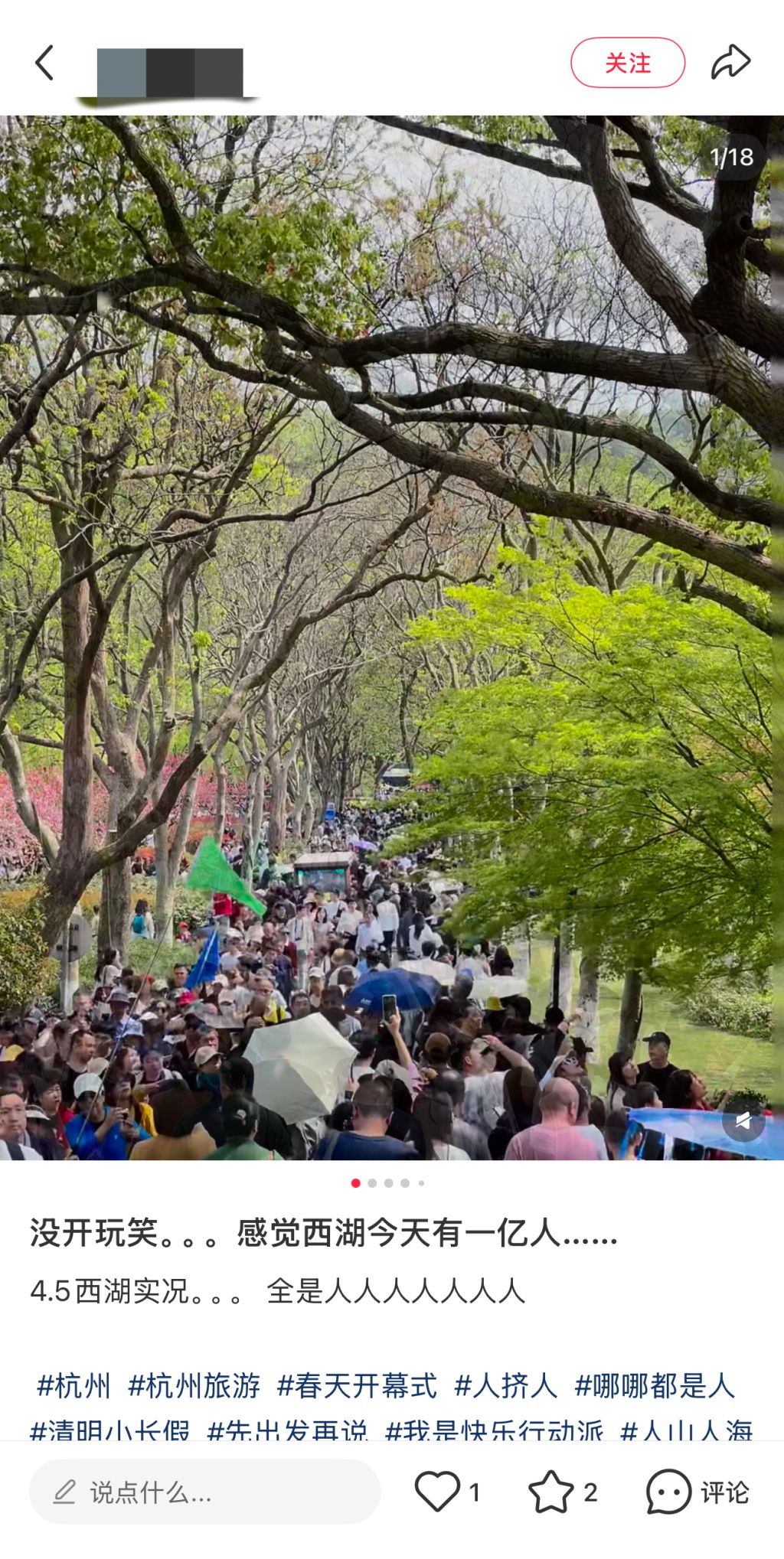 与此同时,社交平台上,清明假期在外旅游的网友们纷纷发布“XX有一亿人”、“XX人从众”的照片。